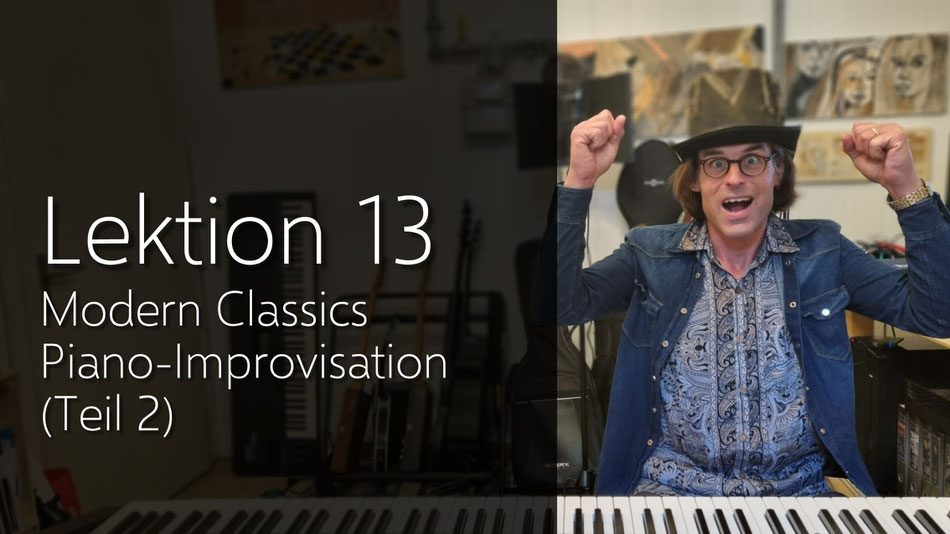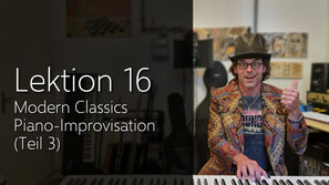 Die Lektionen 12,13 und 16 wählen einen anderen Zugang zum Klavierspiel, der auf den vorigen Lektionen aufbaut. Hier wirst du lernen, wie sich ein modernes klassisches Stück mit wenigen Akkorden aufbauen lässt. Improvisiere ungeniert deine eigene Musik!