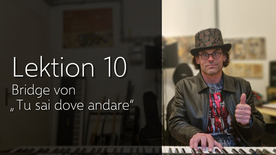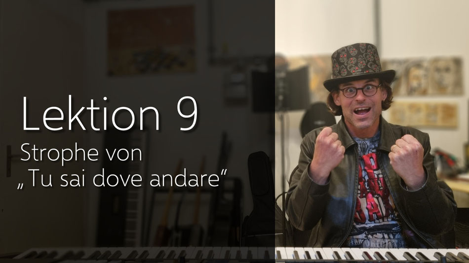 Nun aber geht es in Richtung Rock-Piano-Begleitung. Dass das Klavier bei Rocksongs keineswegs fehl am Platz ist, lernst du in den Lektionen 9-11. Der italienische Sänger Eric Castiglia hat uns extra für diesen Kurs meinen englischen Text ins Italienische übersetzt und der Song ist richtig gut geworden. Er setzt zwar etwas Fingertechnik voraus, aber mit entsprechender Übung wird er dir gelingen. Viel Spaß!
