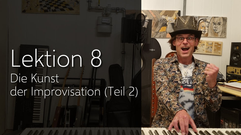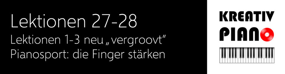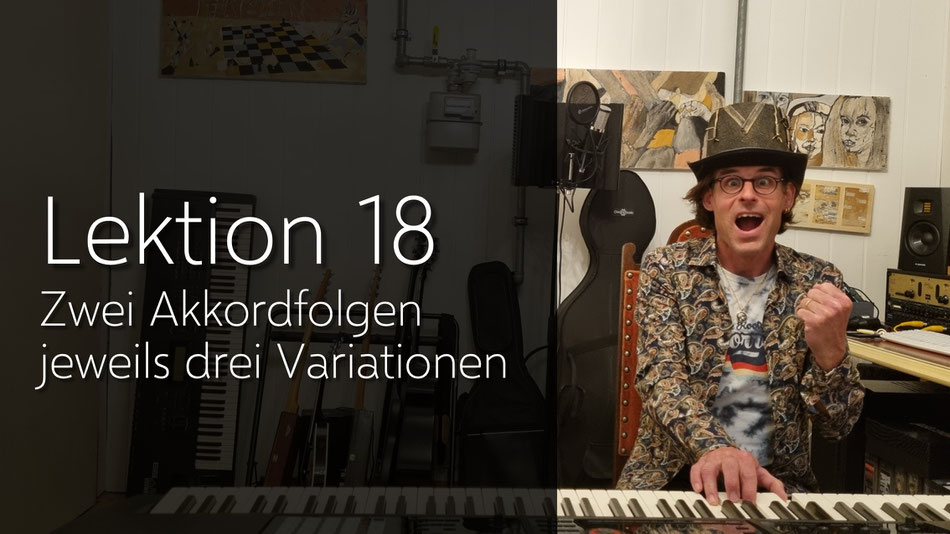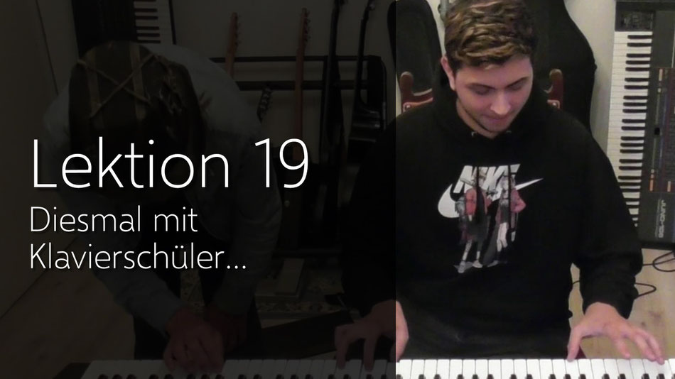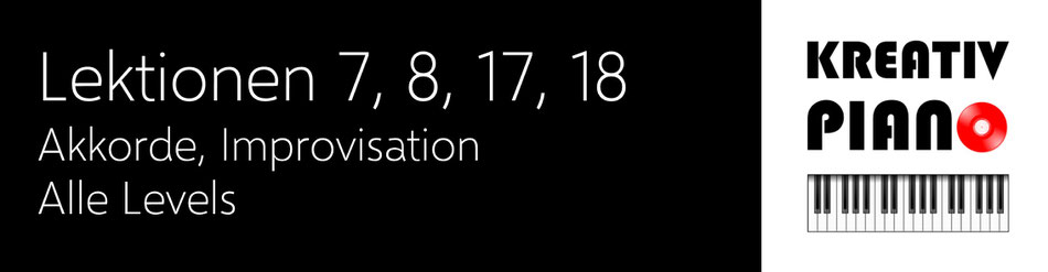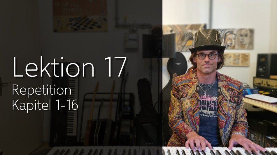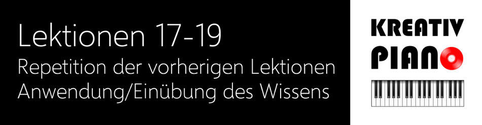 Die Lektionen 17-19 dienen zur Repetition der vorherigen Lektionen. Du wirst das Akkordsystem weiter vertiefen, einige Ideen für deine eigenen Improvisationen kriegen und hoffentlich mehr und mehr frei sein in deinem Klavierspiel. In Lektion 19 bist du bei einer meiner Klavierlektionen dabei, wo ein Schüler mit Ideen kommt und ich versuche, ihn auf seinem Weg bestmöglich zu unterstützen.