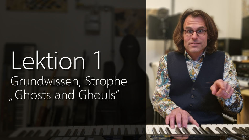 In den Lektionen 1-3 entdeckst du deinen ersten Zugang zum Klavier. Ausgehend vom Grundton "C" werden wir uns auf die gemeinsame Reise in die Welt der Musik begeben. Lerne den Song "Ghost and Ghouls", eine Pop-Ballade, wo du die Akkorde C, F und G kennenlernst. Gesungen wird der Song vom DJ und Sänger Ottostories.